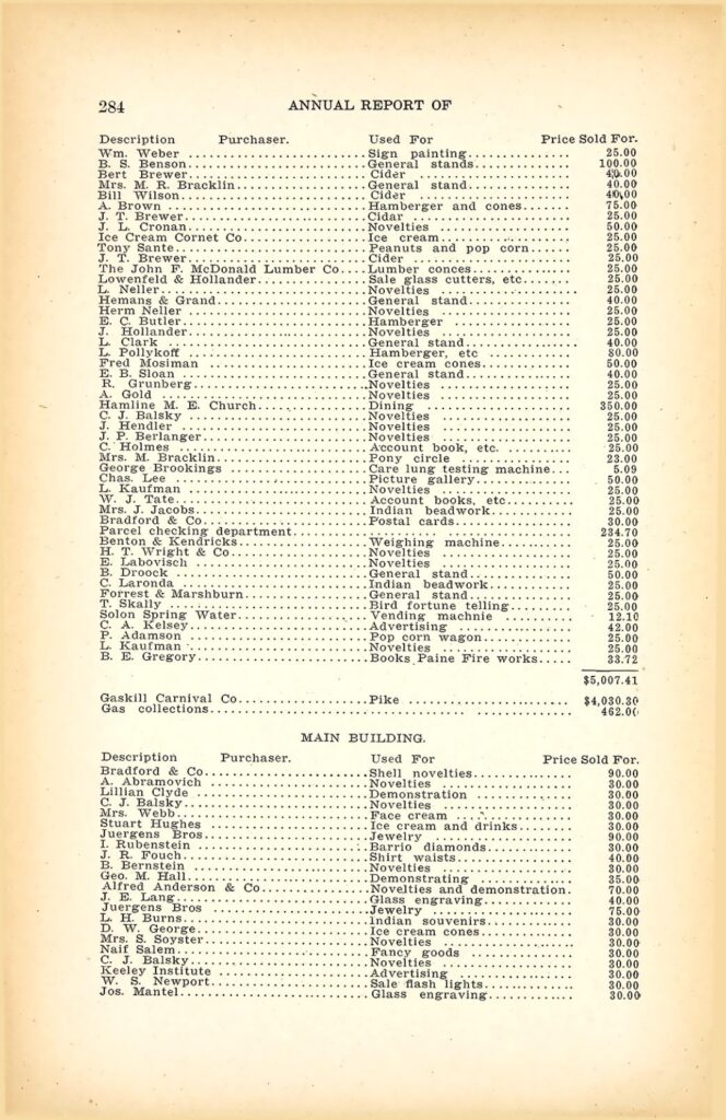 The 1905 Annual Report of the Minnesota State Fair formally records “Gaskill Carnival Co. Pike” as a contracted concession, generating over $4,030 in receipts Gaskill Minnesota State Fair