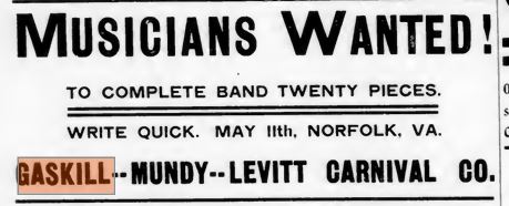 1903 – Gaskill – Munday – Levitt Carnival Company
