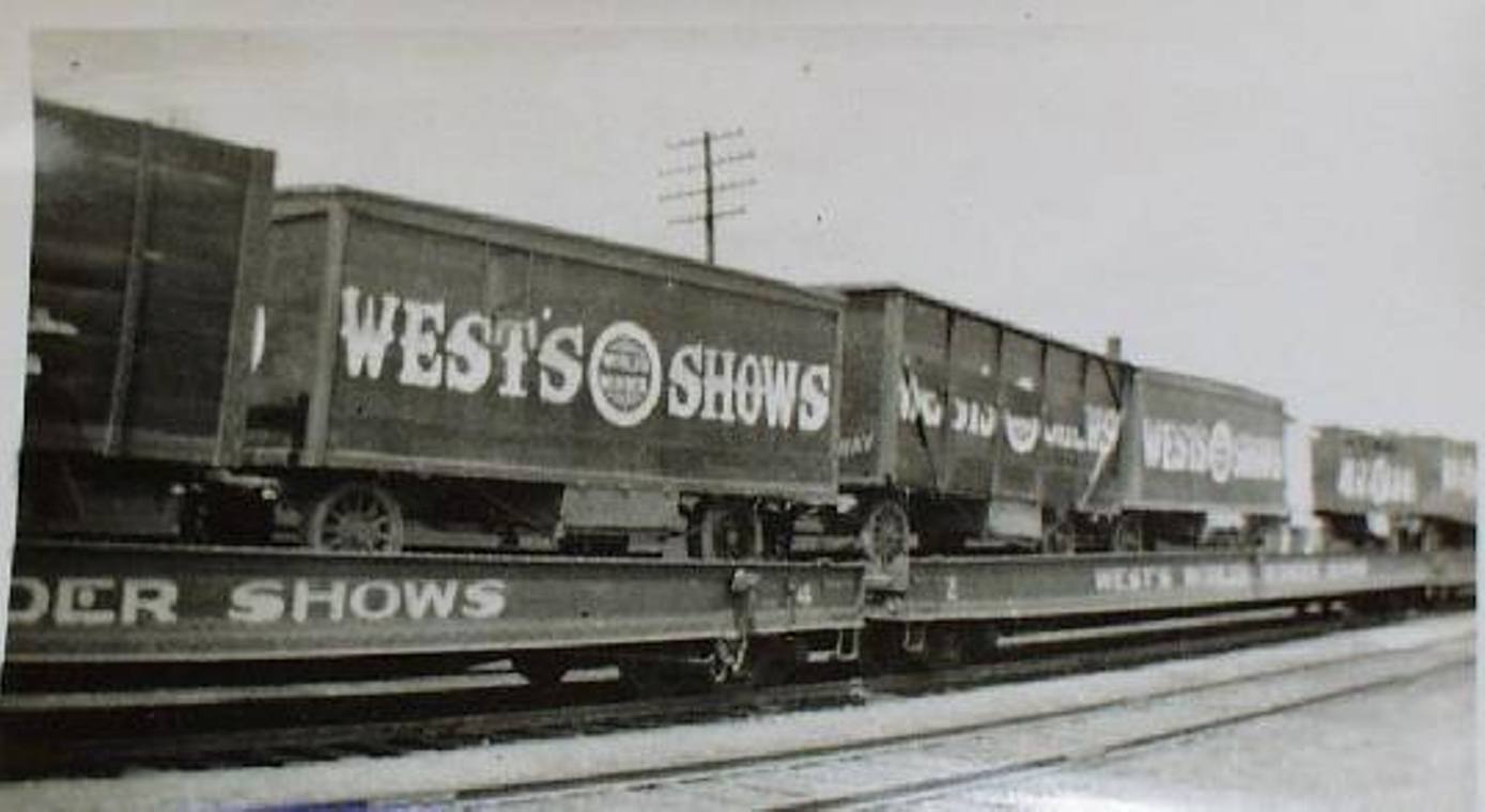 West’s World’s Wonder Shows was started as West’s Bright Lights Show. It began as a ‘gilly show’ in 1919 by Frank West after he purchased the salvageable equipment from the bankrupt Rohda Royal Circus. In a Pictoral of The American Carnival by Joe McKennon (Page 101), he purchased Walter K Sibley’s Show too. By 1924, he was operating a 20 car railroad show and changed the name to West’s World’s Wonder Shows.