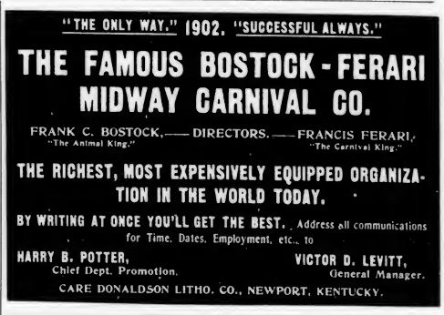 Levitt’s early American experience placed him in the inner circle of the industry’s founders. He worked closely with Frank C. Bostock, Frank Gaskill, Percy J. Munday, and Adolph Seeman, absorbing operational knowledge that ranged from animal exhibitions to midway layout and financial structuring.