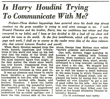 “It’s not egotism, Hilliar, it’s Houdini-ism. I implicitly believe in myself and as all I have to sell is myself I am going to protect my name at all hazards and will fight to the last ditch to keep the name of Houdini a household word. If the world believes me to be the greatest magician of all times, well, I believe it too. Always believe in yourself and trample underfoot parasites who may try to undermine your foundations, and you will win out provided you are on the level. I may have played the part of an egotist at times, but I was merely assuming the character for reasons.”